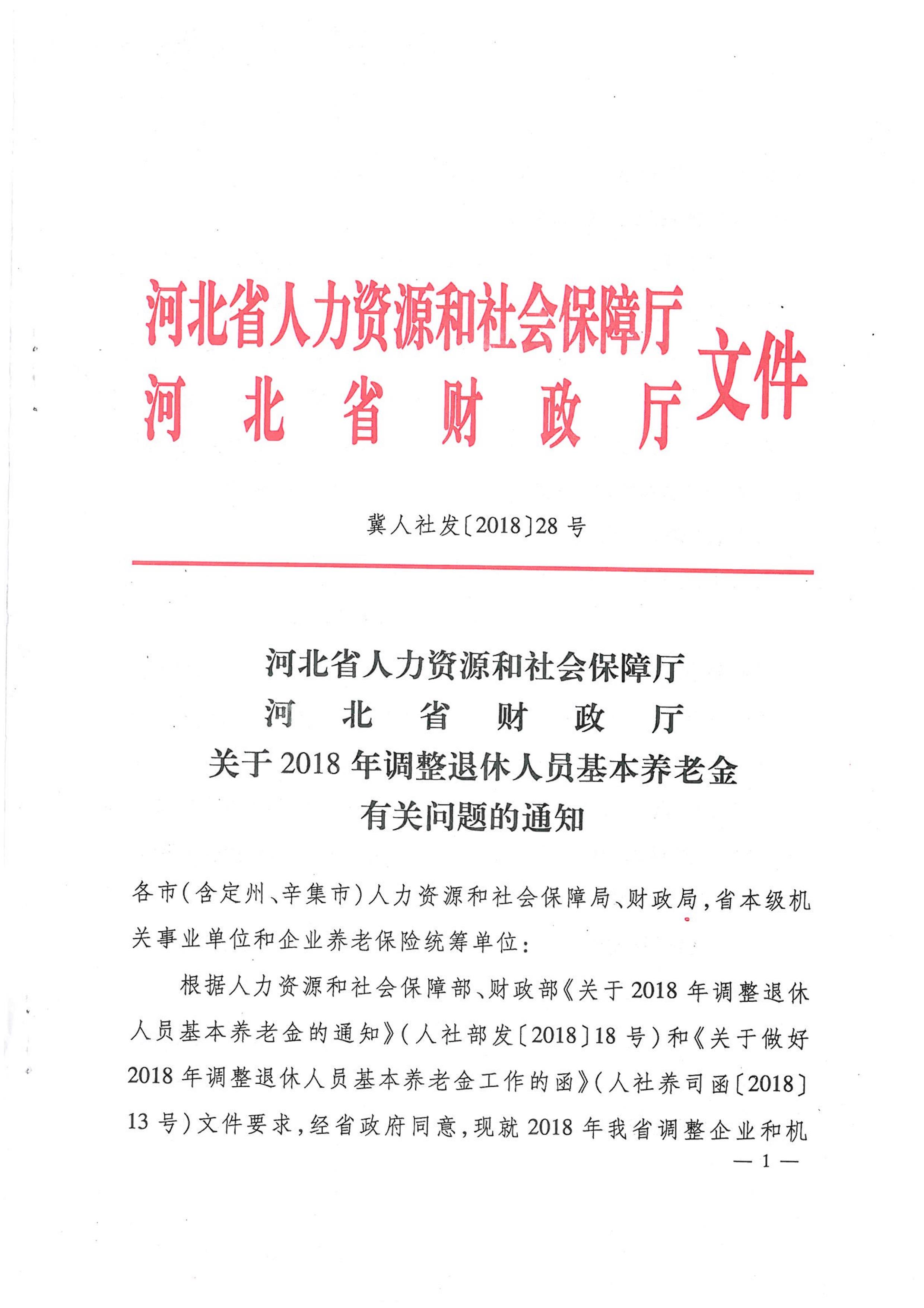 关于2018年调整退休人员基本养老金有关问题的通知