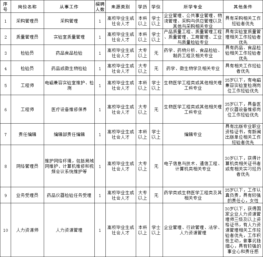 通过“河北人才网”(https://www.hbrc.com.cn/)公开发布“为中国人民解放军联勤保障部队药品仪器监督检验总站面向社会公开招聘劳务派遣人员公告”,公布招聘条件及相关事项。