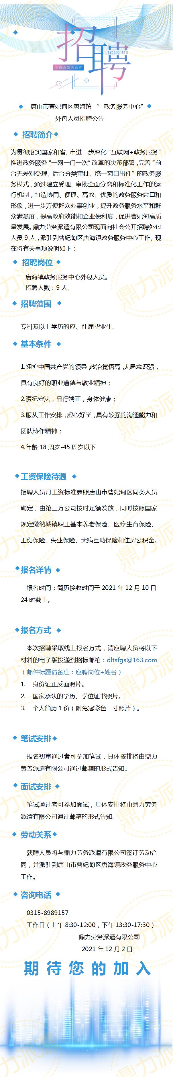 唐山市曹妃甸区唐海镇‘’政务服务中心” 外包人员招聘公告